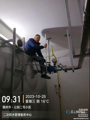 公園二號(hào)小區(qū)業(yè)主及物業(yè)向供水公司客服熱線反映家中水壓較低,出水量不穩(wěn)定,用水高峰時(shí)甚至?xí)霈F(xiàn)停水情況,嚴(yán)重影響正常生活用水。為了解決居民用水缺水缺壓?jiǎn)栴},二次供水管理服務(wù)中心立即安排工作人員到該小區(qū)排除故障。