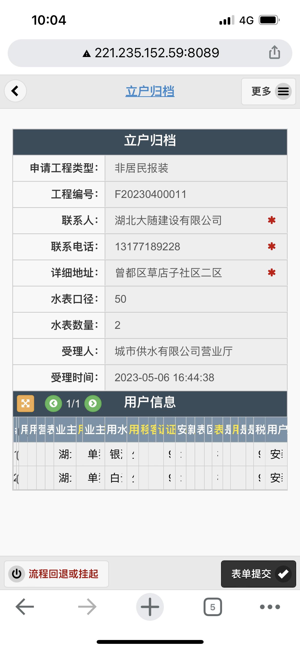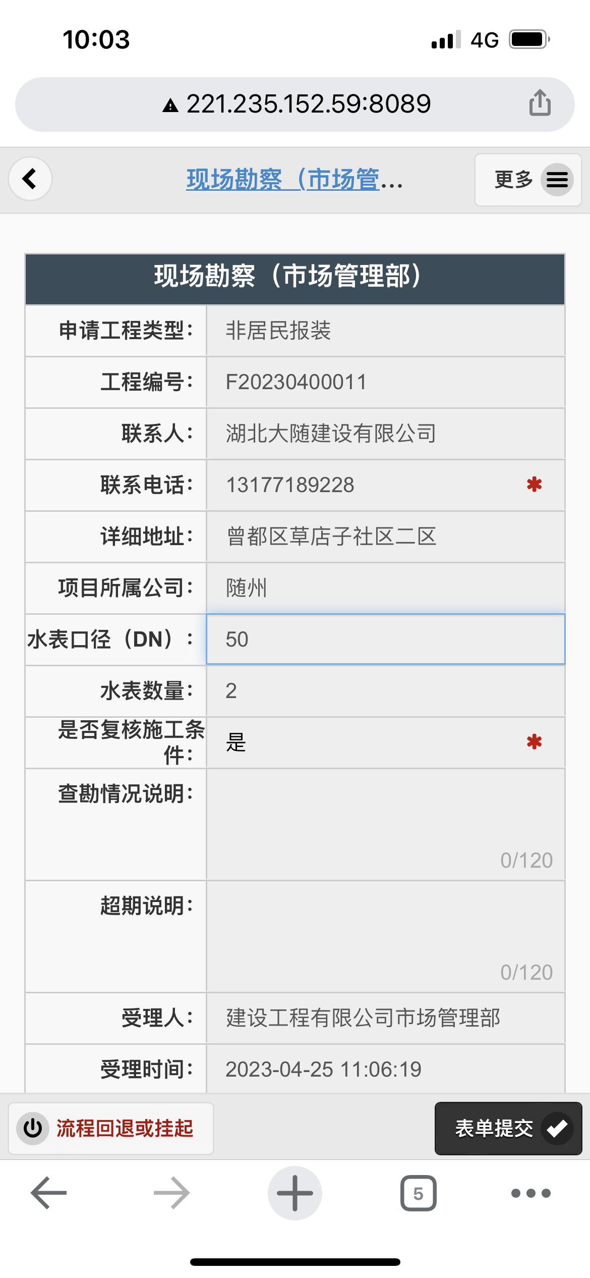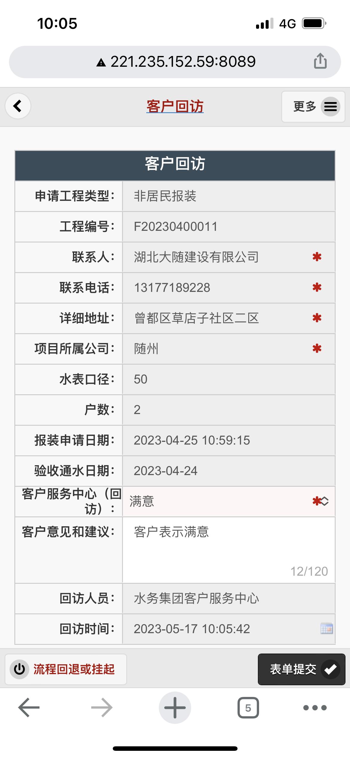 二、應(yīng)用案例及實(shí)際操作界面截圖(包含用水報裝、現(xiàn)場勘查、預(yù)算方案、工程施工、驗收通水、客戶回訪等功能)
