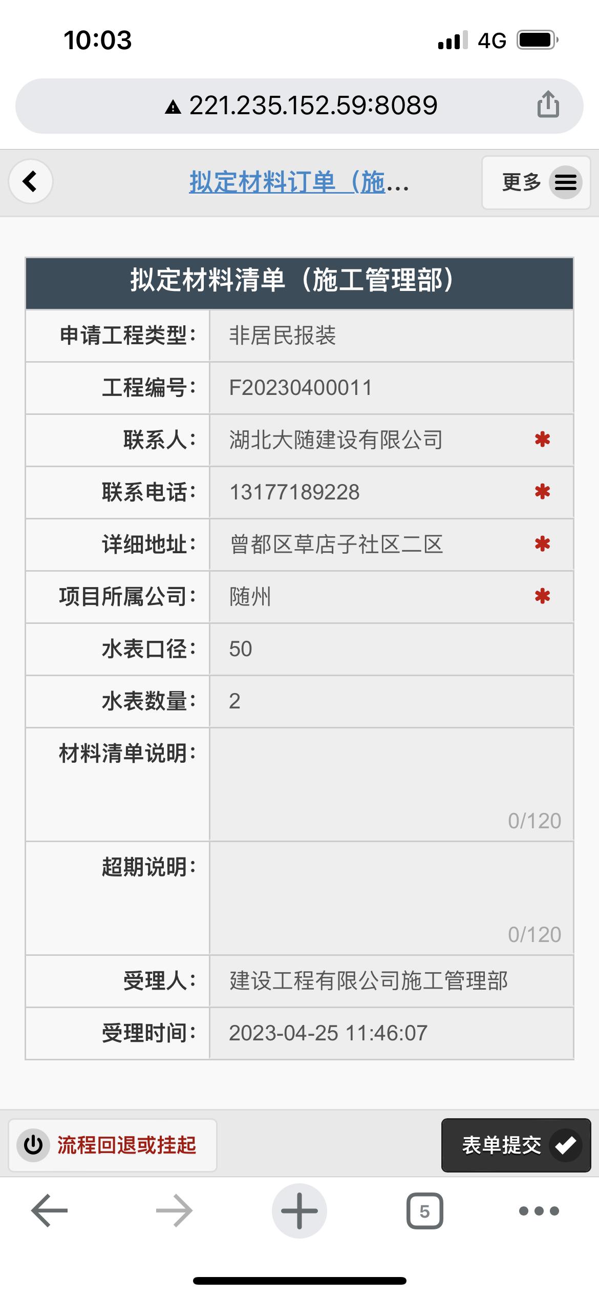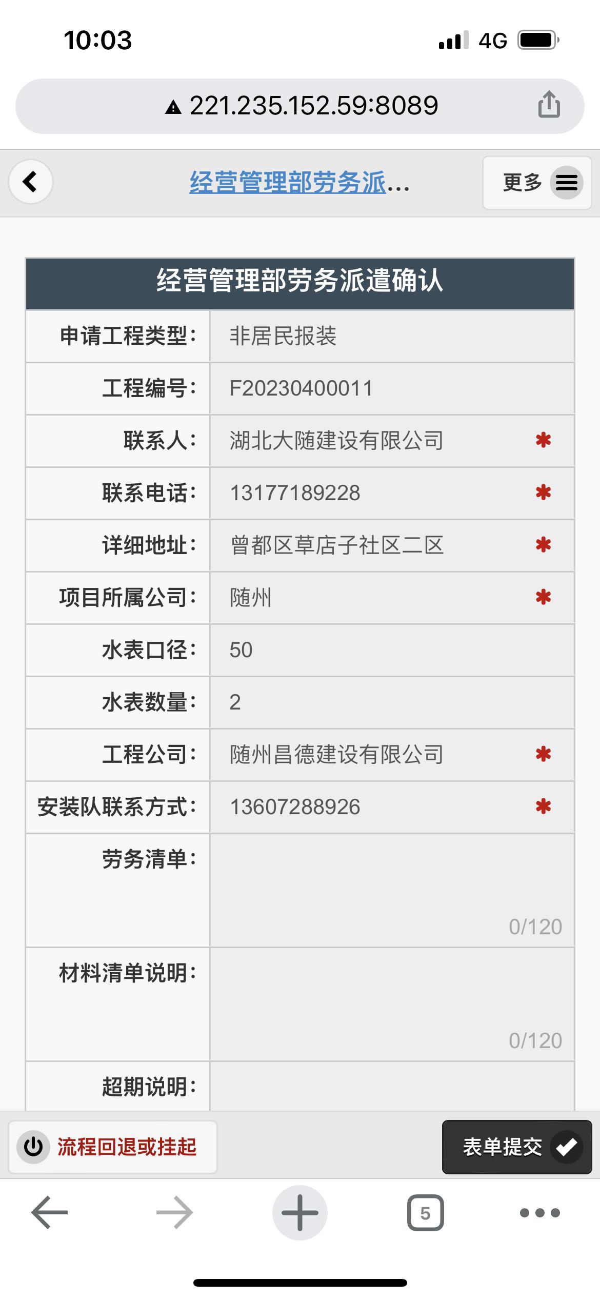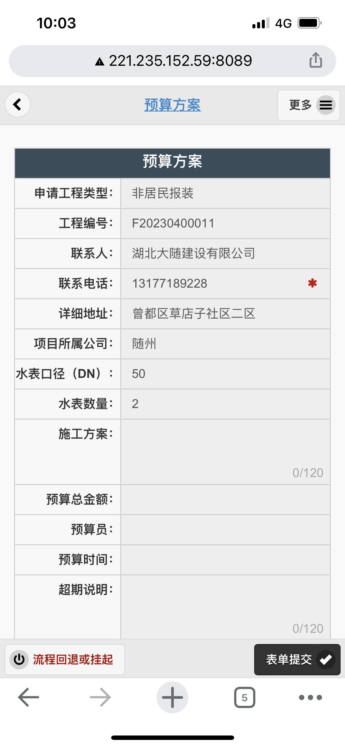 二、應(yīng)用案例及實(shí)際操作界面截圖(包含用水報裝、現(xiàn)場勘查、預(yù)算方案、工程施工、驗收通水、客戶回訪等功能)