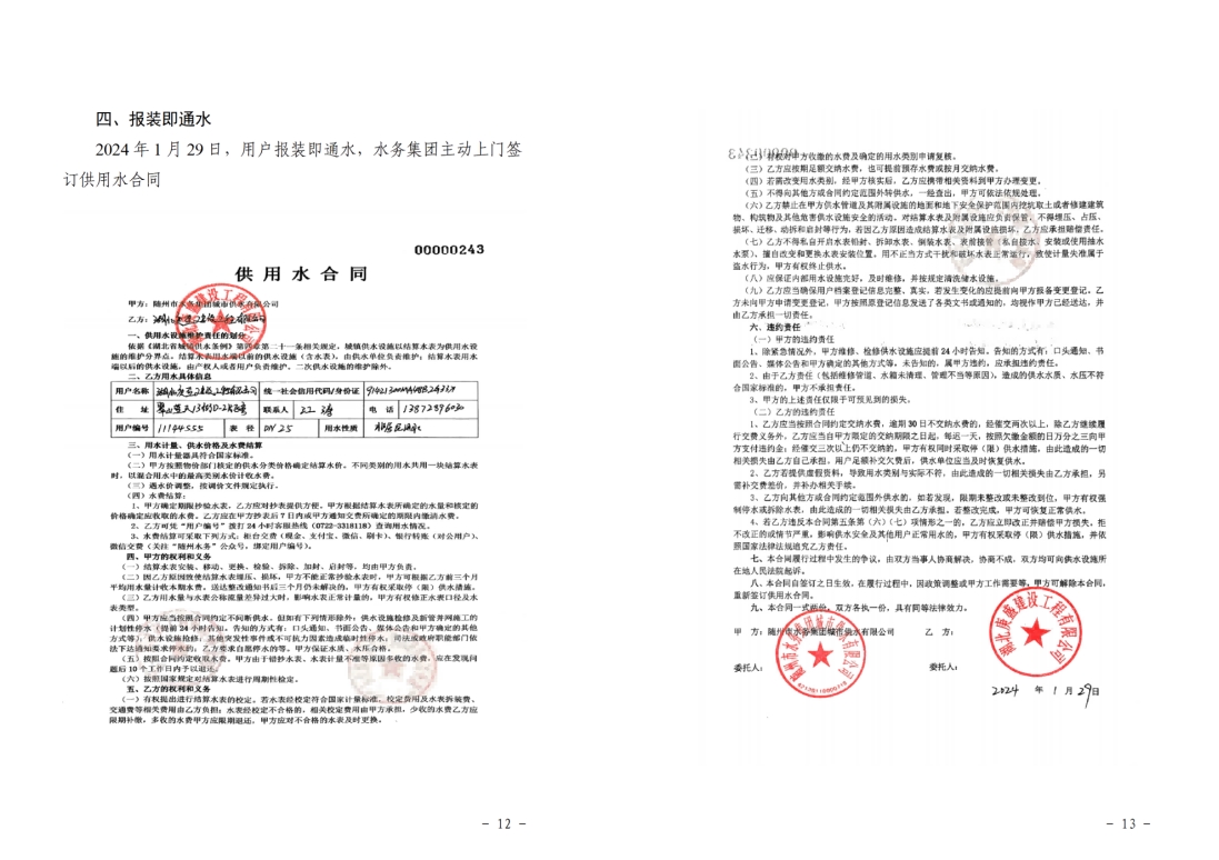 隨州市水務(wù)集團(tuán)主要職責(zé)是向隨州市中心城區(qū)、曾都區(qū)、隨縣以及高新區(qū)提供供水服務(wù),集團(tuán)公司下轄城市供水公司、建設(shè)工程公司、水質(zhì)檢測公司、隨縣供水公司、康潤實(shí)業(yè)公司5家全資子公司。下面展示隨州市曾都區(qū)供水接入案例示范。