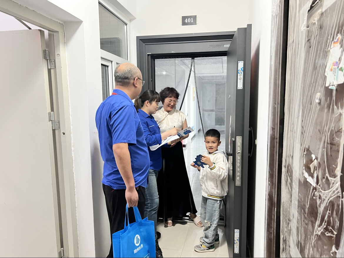活動(dòng)現(xiàn)場(chǎng),水務(wù)工作人員化整為零、分組而行,輕叩一扇扇居民家門(mén),讓 “藍(lán)色服務(wù)” 走進(jìn)萬(wàn)家。“阿姨,您看現(xiàn)在用手機(jī)就能繳水費(fèi),還能隨時(shí)查用水量呢!” 在居民王女士家中,小區(qū)網(wǎng)格員手持手機(jī),指尖在 “隨州水務(wù)” 公眾號(hào)界面流暢滑動(dòng),賬單查詢、故障報(bào)修等功能演示得清晰明了,同時(shí)將用水安全知識(shí)化作通俗易懂的家常話,娓娓道來(lái)。記錄用戶信息的筆尖在紙上沙沙作響,每一個(gè)細(xì)節(jié)都彰顯著服務(wù)的溫度。這般貼心周到的模樣,惹得居民們笑意融融:“這群‘藍(lán)朋友’比外賣小哥還及時(shí)、還用心!”