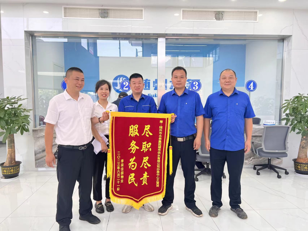 季梁佳園物業(yè)將一面錦旗送到城市供水公司工作人員手中,以表達對該公司供水服務(wù)的深深感激之情。錦旗上印著“盡職盡責(zé) 服務(wù)為民”八個大字,表達了物業(yè)和用戶對營抄中心的王赟赟等工作人員提供的認(rèn)真高效、熱情周到的優(yōu)質(zhì)服務(wù)表示高度贊揚和誠摯的感謝!